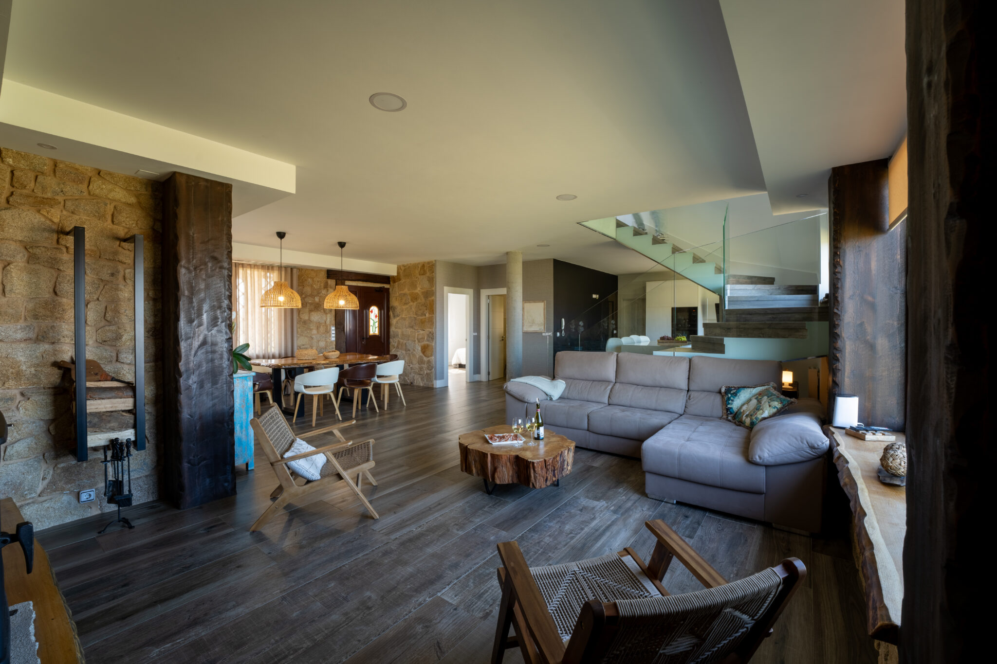 Para Casa Esclavi, una casa rural en Cambados ideal para grupos y familias, realicé un reportaje completo para las redes de Galihost, destacando su reforma moderna que fusiona piedra gallega con espacios amplios y acogedores.